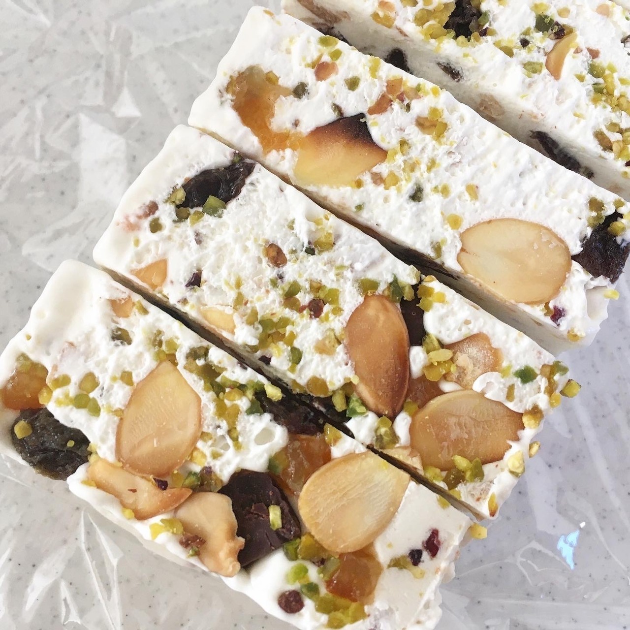 ラム酒※で香り付けしたフルーツ、ナッツ、グラノーラ、チョコレートがゴロゴロ入ったイタリア生まれのチーズアイス♡