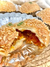 野菜たっぷり手作りトマトカレーを包みました。
