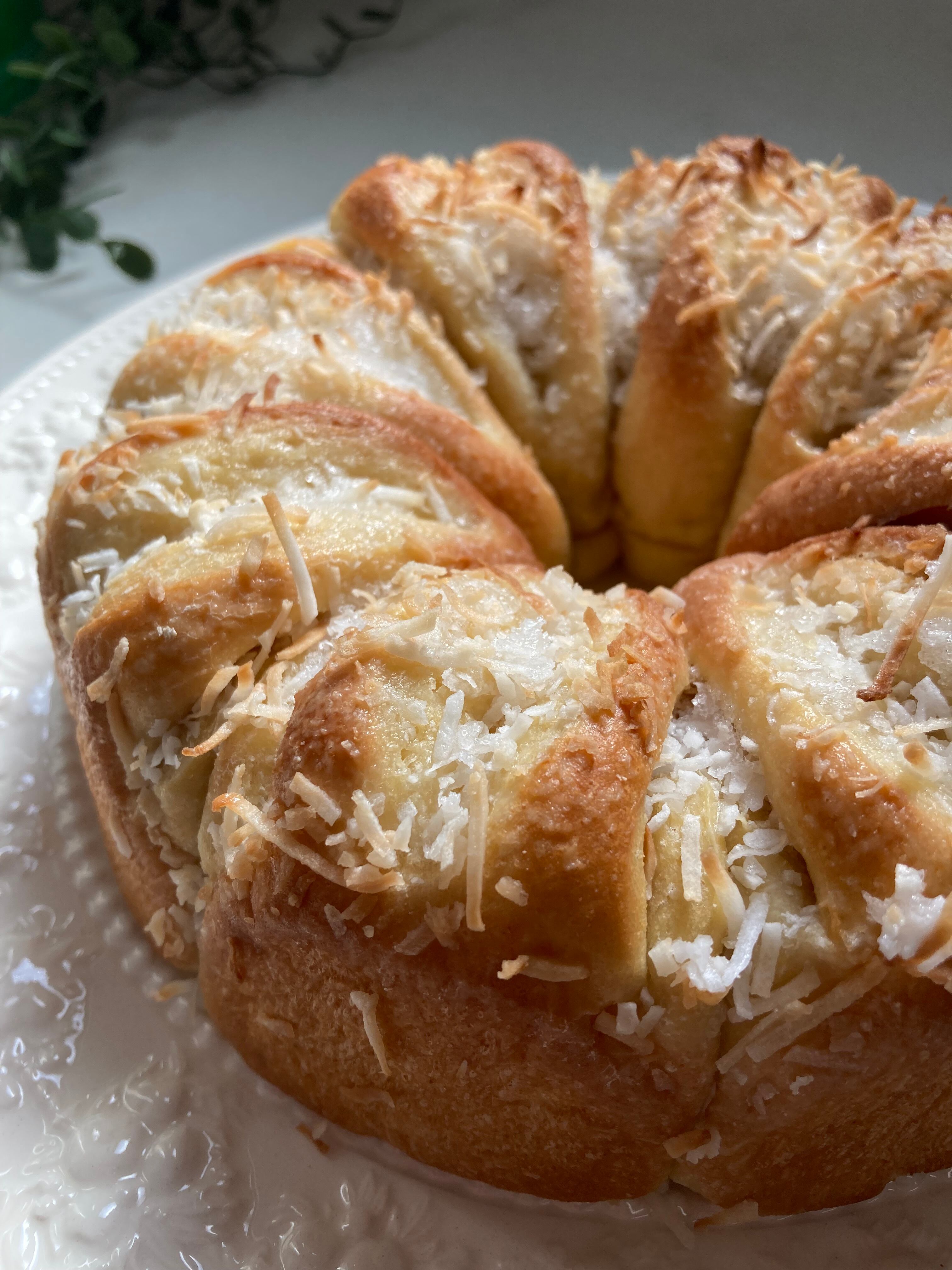 ココナッツ香るふんわり生地に、シャリッと食感のココナッツシュガーをトッピング♡