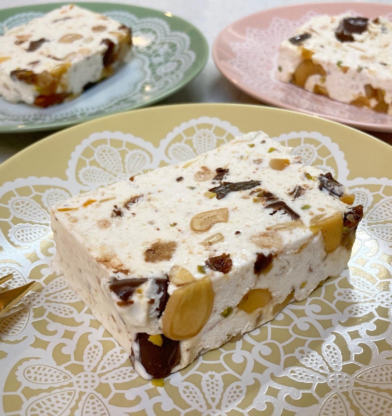 ラム酒※で香り付けしたフルーツ、ナッツ、グラノーラ、チョコレートがゴロゴロ入ったイタリア生まれのチーズアイス♡