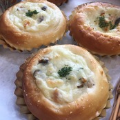 ③強力粉(国産)、豆乳、玉ねぎ、鶏肉、しめじ、鶏卵、薄力粉、米粉、バター、砂糖、トランス脂肪酸フリーショートニング、スキムミルク、ナチュラルチーズ、食塩、パセリ/ドライイースト(一部に小麦、大豆、鶏、乳、卵を含む)