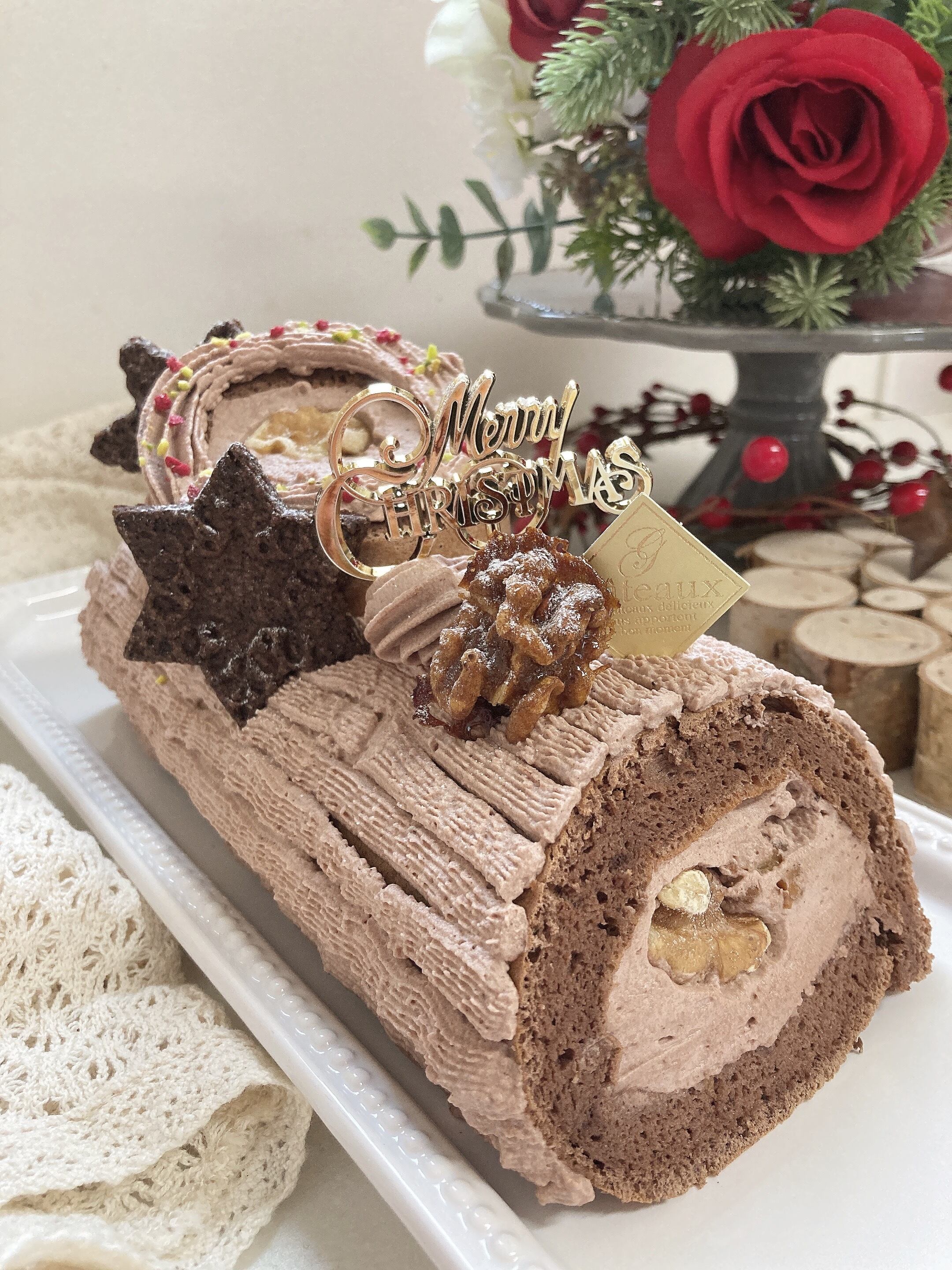 驚くほどスッと溶ける食感のしっとりふわふわ生地が大人気「モカマロンロール」を、Xmas限定でブッシュ・ド・ノエル風デコレーションでお届けします♪