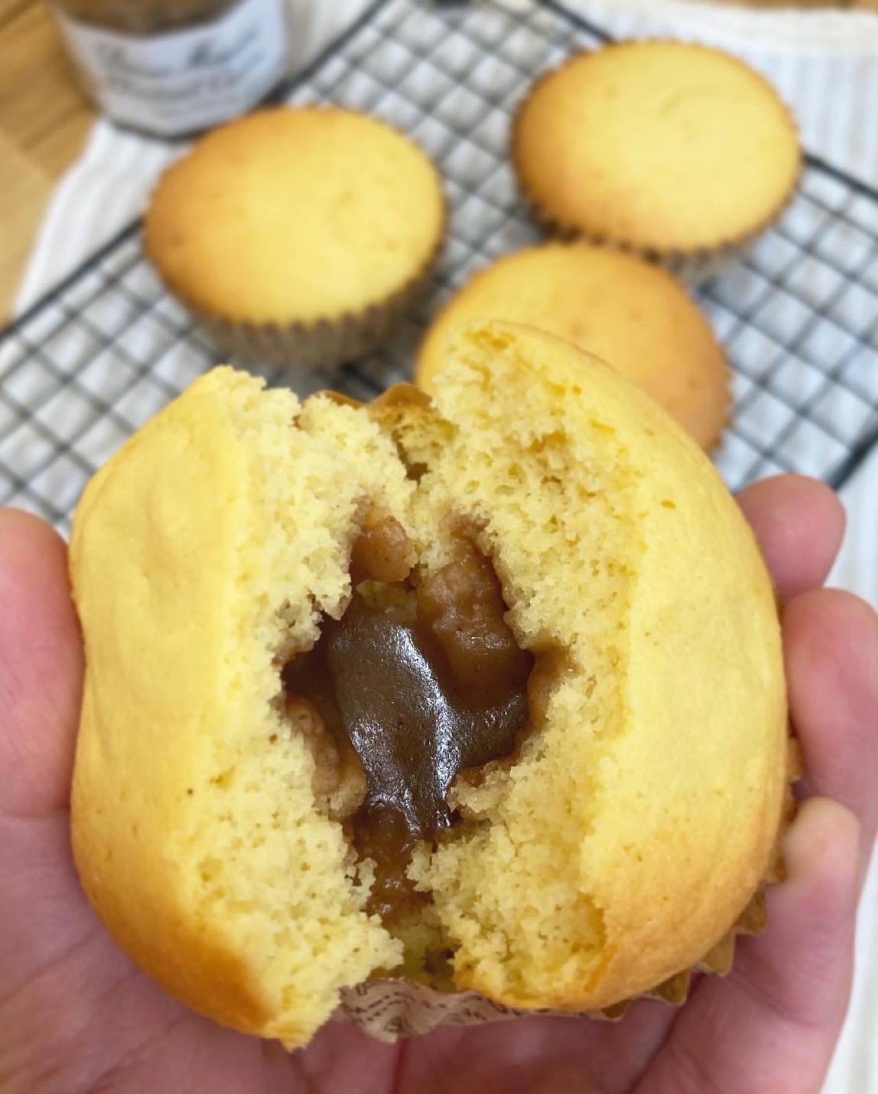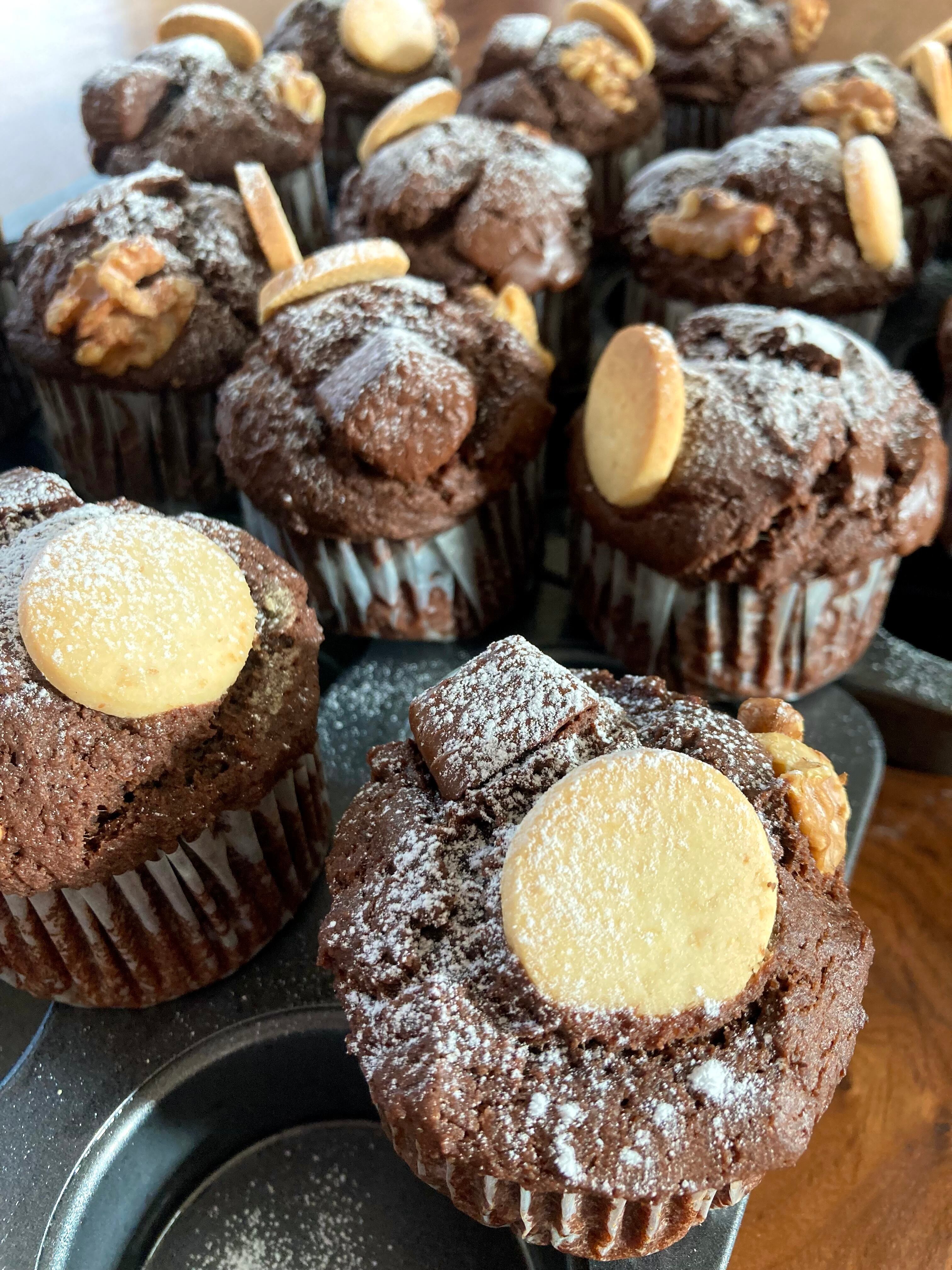 もこもこボリューム満点のマフィンの中には胡桃とチョコが!電子レンジで数秒温めてからお召し上がり下さい。