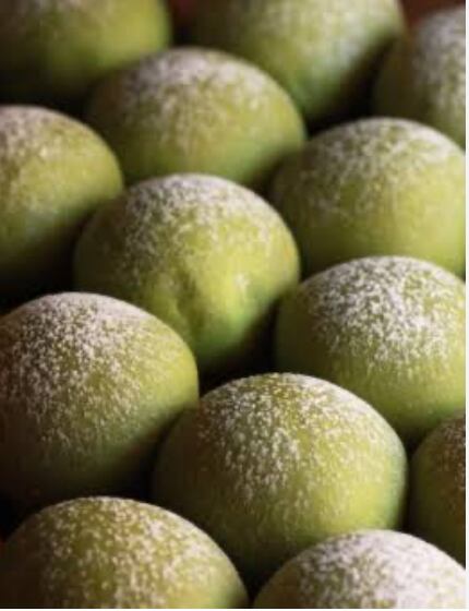 よもぎ風味豊かなヘルシー生地に大納言を加えて焼き上げました。