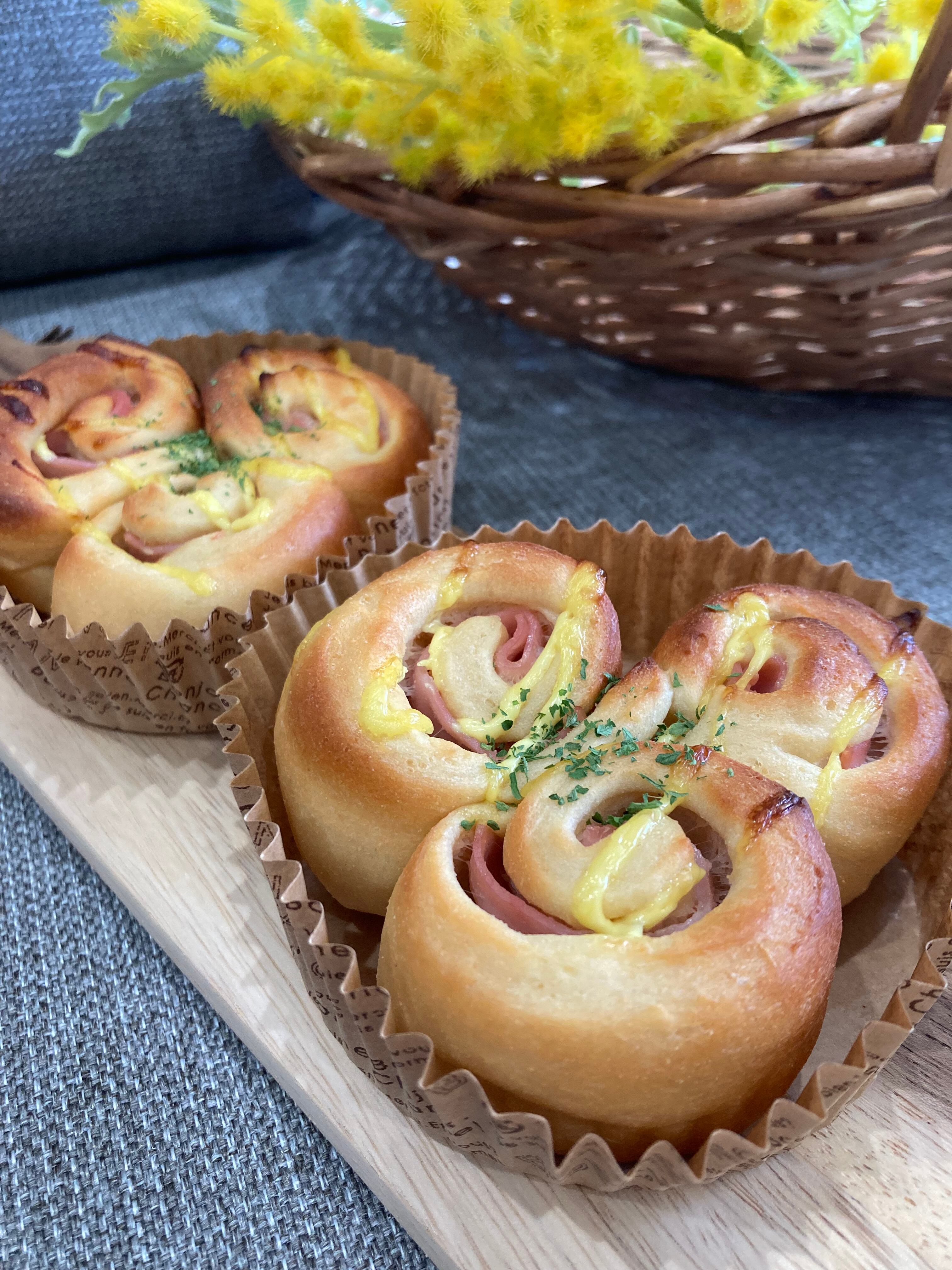 ハムとマヨネーズの塩気がもっちりパンとよく合います♪朝食やランチに惣菜パンとしてどうぞ!